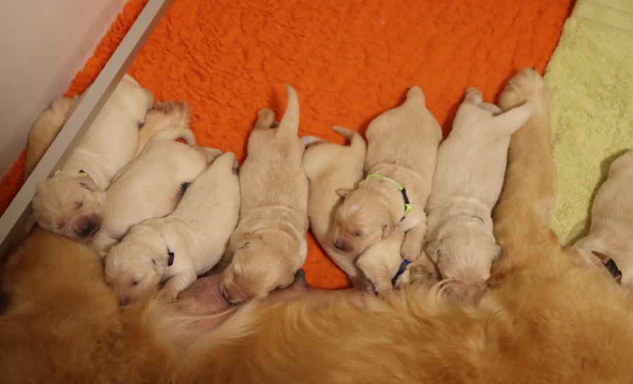A 3 semaines ![]() Chiots à 3 semaines Miss Brown Miss Verte Miss Violette Miss Orange Mr Noir Mr Jaune Mr Rouge Mr Bleu |